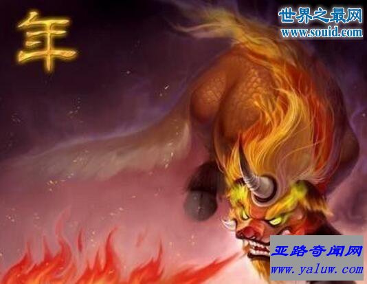 年是一种凶兽,又名“夕”故过年又称“除夕”,每“年”一次出来害人,先人无法制服它。也有人认为年和夕是两种不同的凶兽,但是在汉族传统文化中,人们常常将年和夕都视作同一或同类神怪。