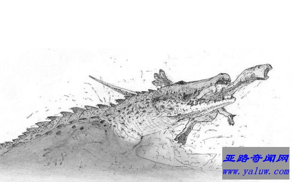 恐鳄体长大约10米,是种已灭绝大型鳄类,是现在鳄鱼的祖先,生存于白垩纪晚期的北美洲东部海岸地区。通过研究其他化石上的牙齿痕迹,古生物学家们得出结论,恐鳄可以杀死并吃掉包括霸王龙在内的最可怕的恐龙,在这个榜单上排第二。