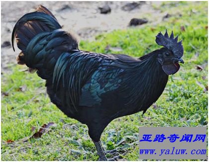 Ayam Cemani全身黢黑,包括肌肉、骨骼和内脏器官也都是黑色,羽毛略有绿色金属光泽,西方人称其为“金属鸡”。这种鸡产自印度尼西亚,非常稀有,培育的成功率不高,因此售价十分昂贵,每只市场价高达200美元,是普通家鸡的数十倍。
