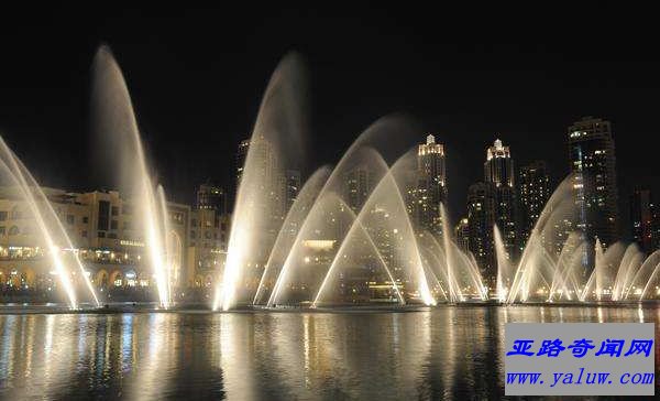 这座世界最大音乐喷泉是由美国Bellagio公司精心打造,拥有275米的总长度,喷出的水柱最高可以达到150米,灯光便随着水柱可以在30公里内任何一个地方看到,这座音乐喷泉让迪拜成为夜空中最亮的焦点。