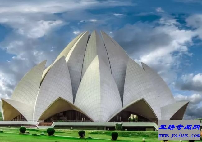 在印度首都新德里,可以看到形状像莲花座的莲花寺,整个庙宇都是用大理石、白云石和水泥建造的,莲花寺的中央大厅能同时容纳2500人,有巨大的9扇门。