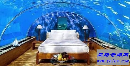 听起来是否很浪漫很新鲜?但是这很明显就是土豪才能享有的特权,你要想在迪拜水下酒店中,一个普通单间的价格就是5500美元(约3万元)一晚。所以看看就好,想想就好,毕竟没钱,贫穷使我理智,也限制了我的想象力。据说迪拜水下酒店是继七星级帆船酒店、棕榈岛、哈利法塔之后的又一地标性建筑,也是世界上建造的第一座水下酒店。水下有21间客房,有一个酒吧和潜水中心;水上的部分则是包括有餐厅、游泳池和巨大的室内温泉。看到这里我只能说,土豪的世界平民百姓不是很懂。