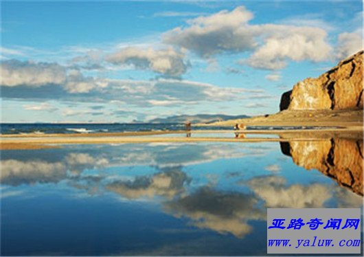 青海湖位于青藏高原上,青海湖四周被四座巍巍高山所环抱,烟波浩渺、碧波连天的青海湖,就像是一盏巨大的翡翠玉盘平嵌在高山、草原之间,构成了一幅山、湖、草原相映成趣的壮美风光和绮丽景色。这里地势高,气候十分凉爽。即使是烈日炎炎的盛夏,日平均气温也只有15℃左中,是理想的避暑消夏胜地。