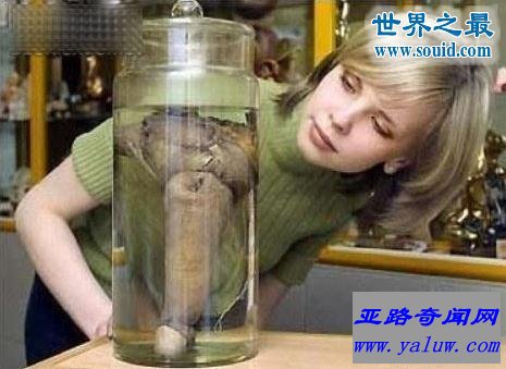 非洲象人族男人拥有世界上最大的阴茎,上面的象人族男子,据说疲软状态下,其男性生殖器长度为33.5厘米,剖面直径为4.3厘米,(睾丸)约为鸡蛋大小。兴奋状态下长度达到56厘米,剖面直径为7.5厘米,睾丸约为鸭蛋大小,射精时精液能喷出6米以外,精液量平均值为95毫升(喝水的纸杯半杯)......【查看详情】