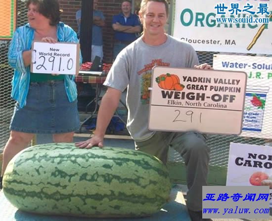 据了解,大南瓜联邦是目前世界上权威的认定巨大果蔬的组织机构, 它每年都会举行果蔬大赛,参赛作品由比赛的权威专家进行权衡和取舍。“西瓜王”重达158公斤,它就是由来自于美国田纳西州的克瑞斯.肯特种植出的,超出上一届产自意大利的“西瓜王”。肯特表示,“我从来都没有种出过如此大的西瓜。我真不敢确定能打破去年的‘西瓜王’的记录”。