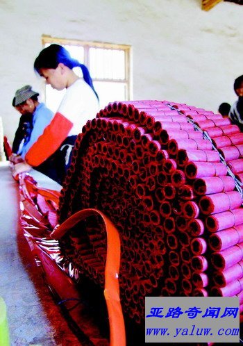 浏阳造成世界最长鞭炮。鞭炮是一段一段拼接而成。