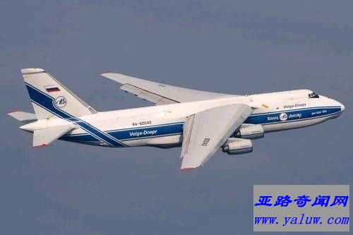 安124“鲁斯兰”,150吨;安124粗大的机身呈梨形截面,主翼为后掠下反式上单翼,翼展达73.30米。翼下4个短舱内,装有推力为23400千克的D-18T涡扇发动机。该发动机由扎波罗什“进步”机器制造设计局研制,带有反推力装置。机头机尾均设有全尺寸货舱门,分别向上和向左右打开,货物能从贯穿货舱中自由出入。