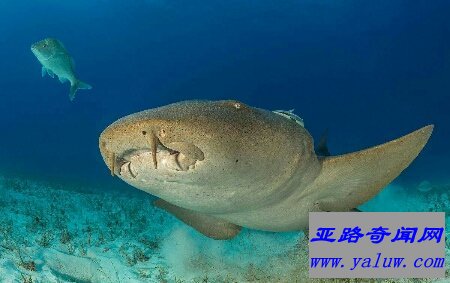 之所以叫护士鲨,一方面是它性情温顺,不会主动攻击人类,二是外形上头部形状类似护士帽,因此又名护士鲨,非常喜欢围绕着游客转,是一种非常温顺的海洋动物!铰口鲨为卵胎生的,每次都只有一至数条小鱼出生,因为很多小鱼还在母鱼腹内就会残杀同类,所以出生率非常低!铰口鲨在野生环境中偶尔吃一点海藻,既可以吃鱼吃肉,也可以吃植物,白天通常躺在沙质海底或躲进洞里休息,夜间出来捕食,从来不攻击人类!
