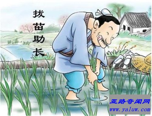 拔苗助长:把苗拔起,以助其生长。后用来比喻违反事物的发展规律,急于求成,反而坏事。