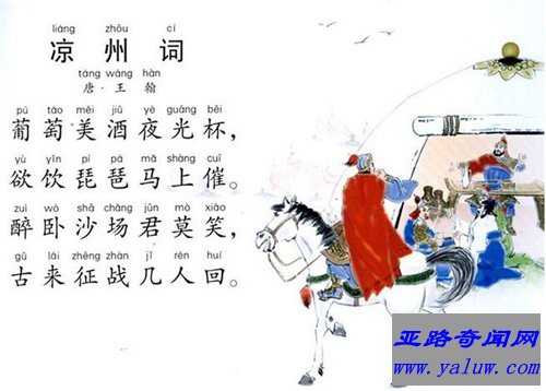 葡萄美酒夜光杯,欲饮琵琶马上催。