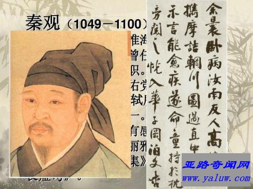 秦观是北宋文学史上的一位重要作家,被尊为婉约派一代词宗。但在秦观现存的所有作品中,词只有三卷100多首,而诗有十四卷430多首,文则达三十卷共250多篇,诗文相加,其篇幅远远超过词若干倍。