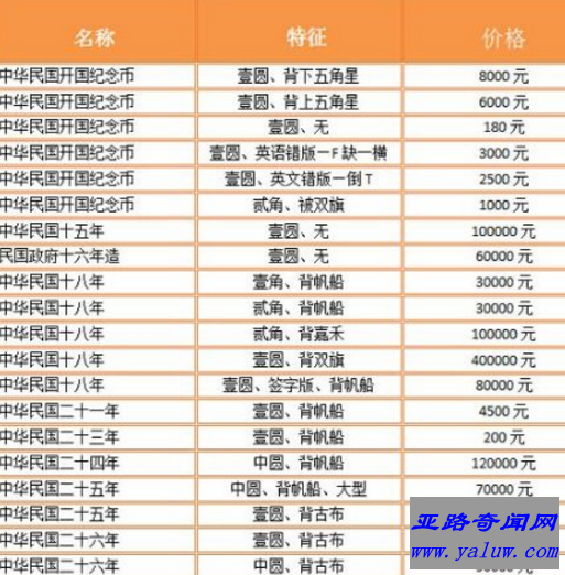 ②版别稀少。比如开国纪念币上六星上五星下五星等、中华民国 18 年地球版、中华民国 21 年金本位等都是稀有版别。正是因为十分稀少,目前银币在拍卖市场上的最高成交价为 500 万元。