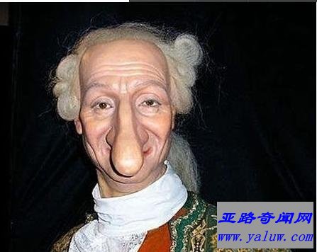 这是有记载的鼻子最长的人的蜡像,是18世纪的一位德国贵族,可谓是史上鼻子最长的人,每次的假面舞会,他是不用化妆了。
