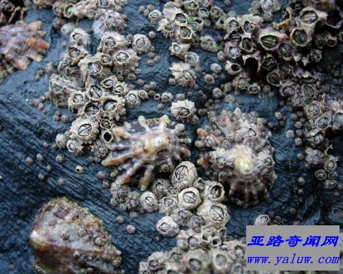 藤壶:成熟的藤壶是雌雄同体生物--即每只藤壶身上同时生长着雌雄两性的生殖器官。藤壶喜欢群居,仿佛这样才感到安全,但是过分密集的群落又会使大量藤壶幼体夭折。有时藤壶采取这样的方式避免过分拥挤--它们密密麻麻地吸附在轮船的船身上,把这个危机转嫁给了人类。为了适应这种头尾颠倒的生活方式,藤壶的卵巢是长在头上的。