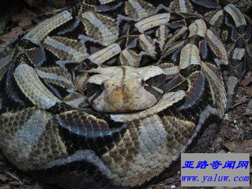 所以这样的体色可以将其与周围环境融为一体,让经过他周围的猎物在其攻击范围内给于致命的攻击。加蓬蝰蛇可以长到1.2m的长度,但是也有过2.10mtr长度的记录,这种蝰蛇的体重有8~10公斤重,和一副有着2英寸长的毒牙。