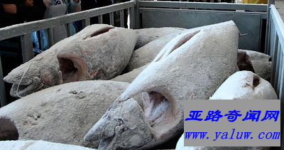 最贵蓝鳍金枪鱼蓝鳍金枪鱼已被世界自然保护联盟红色名录列为:极危(CR)。1864年,意大利法维尼亚纳岛的渔民捕捞蓝鳍金枪鱼的记录是14020条,平均每条重192公斤,2009年捕获量仅为100条左右,平均重29公斤,这就是蓝鳍金枪鱼悲剧的真实记录。新的研究表示,唯一能够拯救南方和大西洋蓝鳍金枪鱼的方法是禁止捕鱼,直到其种群数量恢复。购买回来的原始蓝鳍金枪鱼。