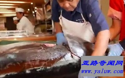 寿司像是金枪鱼和三文鱼都是很多人都喜欢吃的,但是这种蓝鳍金枪鱼个头又特别的大一般小级别的厨师都做不来的。