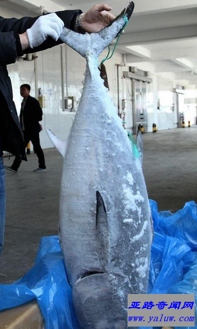 2013年1月5日,日本东京筑地鱼市拍卖一条重达222公斤的蓝鳍鲔金枪鱼,被一家寿司店以1.55亿日元(约合人民币1100万元)的天价拍下,创造了新的历史纪录。