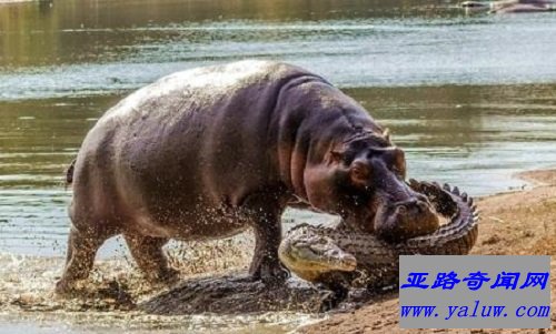 但在陆地上显得十分臃肿,行动迟缓.最重要的是,它在空气中暴露时间一长就有可能皮肤开裂,要分泌一种褐红色的液体来保持湿度.这种液体显然是来自血液,因此可以断定,河马上岸必然吃亏.鳄鱼个头比河马小得多了,河马浑身圆滚滚的,就是给鳄鱼吃,鳄鱼的嘴张开都咬不着河马的身子。