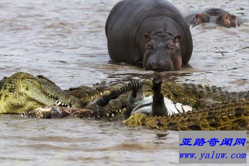 我就见过一个电视片,河马和鳄鱼在一个水塘里,许多的斑马迁徙路过这儿,鳄鱼乘机咬吃体弱的小斑马。后来,有只鳄鱼走到河马跟前,被河马咬住,在口里嚼了两下,就只剩下像一张纸样的皮了。鳄鱼为什么不吃河马?可见,鳄鱼虽凶,但是,因为比河马小,也奈何河马不得!