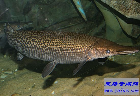 巨骨舌鱼是一种老的鱼种,它生活在世界上最原始的热带丛林水域中,它们常见于巴西、秘鲁的亚马逊河流域,以及委内瑞拉、哥伦比亚境内的亚马逊水系的支流中。这种庞然大物长着尖而长的头、青色的金属般的背、古铜色的侧部和大块的鳞片,有的鳞片边缘显出鲜艳的红色。