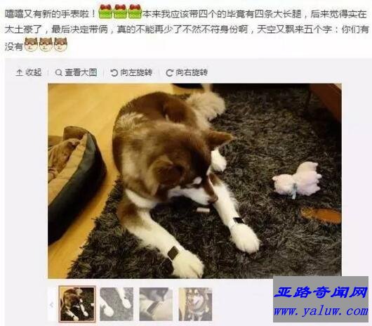 新上市的苹果手表它都有,并且还不只一台,真是要拉仇恨的节奏。世界上最土豪的狗不仅睡价值2990人民币的床上,还有狗爸王思聪给它买包,专门从国外订的限量款,逼格随便装都是高贵大气上档次。对此,网友还抱怨,自己辛辛苦苦省吃俭用买的名牌包,没想到跟一只狗狗撞包了,让人哭笑不得!