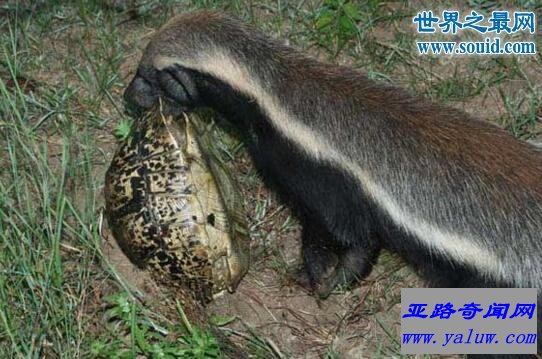 蜜獾喜食蜜蜂幼虫和蛹,它们会不顾自身的安危直接冲进蜂箱,这往往不幸的导致其死亡。蜜獾能杀死鳄鱼,而且它是非常有效的蛇杀手。它只需要15分钟就可以吃掉1.7米的蛇。这些动物的凶猛在自然界众所周知的,甚至没有哪只豹或狮子可以杀死它们。