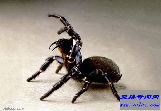 澳大利亚漏斗形蜘蛛澳大利亚漏斗形蜘蛛,生活在澳大利亚悉尼市近郊。它被视为毒性最强的蜘蛛,其毒牙足以穿透人类的指甲。与多数过着宁静生活的蜘蛛不同,这种小家伙极具侵略性,一旦受到打扰就会举起前腿,并不断咬受害者。虽然雄蜘蛛的体型比雌蜘蛛小,但其毒液的毒性是雌蜘蛛的5倍。