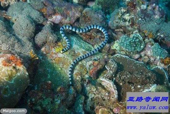别看陆地上的蛇威风凛凛,实际上海里海蛇的毒性比陆地蛇大的多,世界上最毒的蛇就是贝尔彻海蛇,而澳洲艾基特林海蛇与贝尔彻海蛇,还有上面的澳洲方水母,都来自澳洲附近水域,它的毒液可比眼镜王蛇神马的强大的多,如果不幸被它咬上一口,数十分钟内必死。它们一般长着一张大嘴,其躯干略呈圆筒形,体细长,后端及尾侧扁平,世界十大毒王排名第二实至名归。