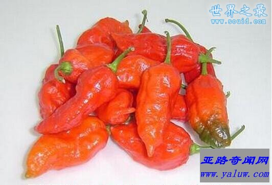 该辣椒是世界上最辣的辣椒,又名“地狱之火”,普通人的嘴唇只要碰一下它的断面,马上就会肿起来。