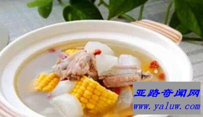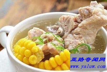 排骨玉米汤的做法一般都没有什么区别,不过如果想要做好还是要费工夫的。餐桌上有碗热气腾腾的鲜汤,常使人垂涎欲滴,特别是在冬春季,汤既能助人取暖,又能使人的胃口大开。 煲汤往往选择富含蛋白质的动物原料,最好用牛、羊、猪骨和鸡、鸭骨等。其做法是:先把原料洗净,入锅后一次加足冷水,用旺火煮沸,再改用小火,持续20分钟,撇沫,加姜和料酒等调料,待水再沸后用中火保持沸腾3~4小时,使原料里的蛋白质更多地溶解, 浓汤呈乳白色,冷却后能凝固可视为汤熬到家了。