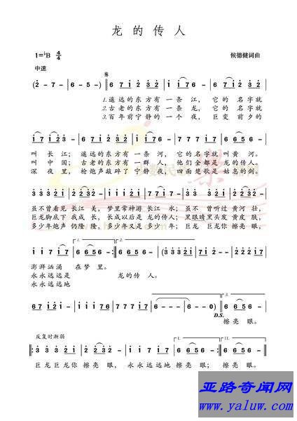 《龙的传人》是台湾作曲家侯德健的著名作品,成于1978年12月16日,首先经台湾名歌手李建复演唱,随后经过香港歌手张明敏演绎,歌曲更传遍中国,而龙的传人也成为中国人的民族别称.歌词凝聚着强烈民族自豪感和爱国情感,勤劳智慧的中国人民对自由完美的向往和追求,意在激发中国人的民族自豪感、自信心,特别是华裔.