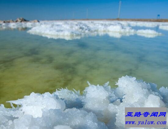 察尔汗盐湖不仅是个工业开发区,也有着专属与此,与大自然浑然天成的美丽风景。察尔汗盐湖一切绿色植物均难以生长,但却孕育了晶莹如玉、变化万千的神奇盐花。盐花是盐湖中盐结晶时形成的美丽形状的结晶体称谓。