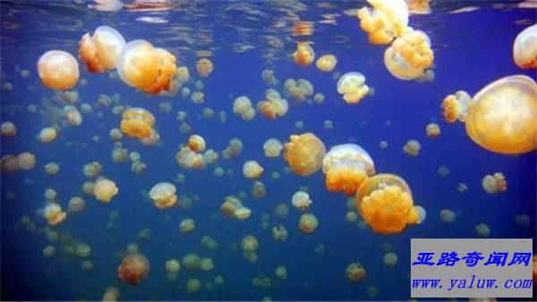 由于天敌们的消失,这些水母“遗失”了祖先用以防卫自身的武器——身体内的毒素。这样,帕劳水母湖拥有了世界上独一无二的无毒水母。