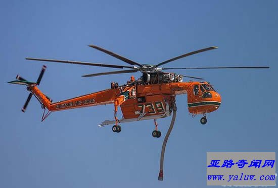这架飞机不多见,一看它的说明,型号叫做CH54,起重直升机。机身之所以成为这样,那是功能的需要嘛。不错。