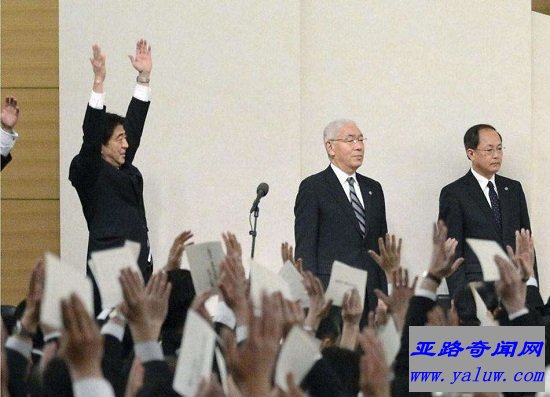日本内阁总理大臣:简称日本总理大臣、日本总理,通称日本首相,是日本内阁的最高首长,也是日本国政府首脑,领导各行政机关运作。其产生方式是在国会议员之中择一提名,再经国会议决指名,在形式上由日本天皇任命。现任首相是日本自由民主党党首安倍晋三,自2012年12月26日起就职。