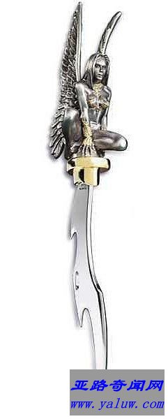 外形比较像蛇,打造时被赋予了一双天使的翅膀。这把刀的下落也不明了。只是在十九世纪的欧洲与多起刺杀案件有关,被杀的都是一些黑帮或恐怖组织的重要成员,当时被称为上帝的灵翼,可是后来一些基督教的神职人员也死在了这把刀下,所以很多人都说见此刀说一句保佑,五年之内必将发财或者当官!