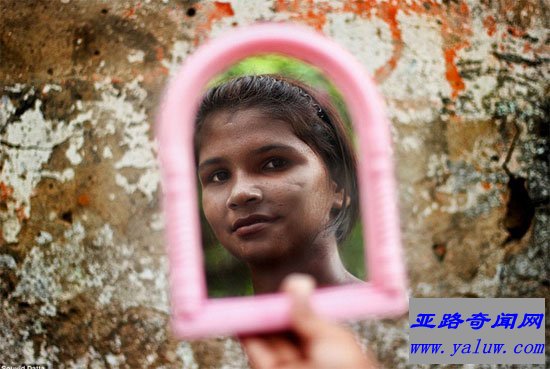这里的性工作者有很多(辛酸的)故事:她们被父母扔出家门;逮捕后被警察强奸;因客人不戴安全套,拒绝亲密接触被毒打;邻居向她们扔猪便;警察用烟头粗暴地烫她们的腿。孩子因为是妓女所生,被拒绝到学校的某些地方,甚至拒绝给治病。图为索纳加奇(Sonagachi)的性工作者。